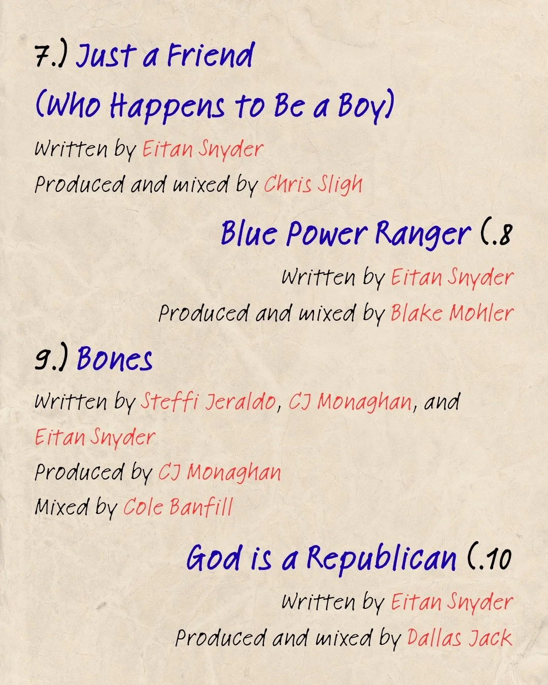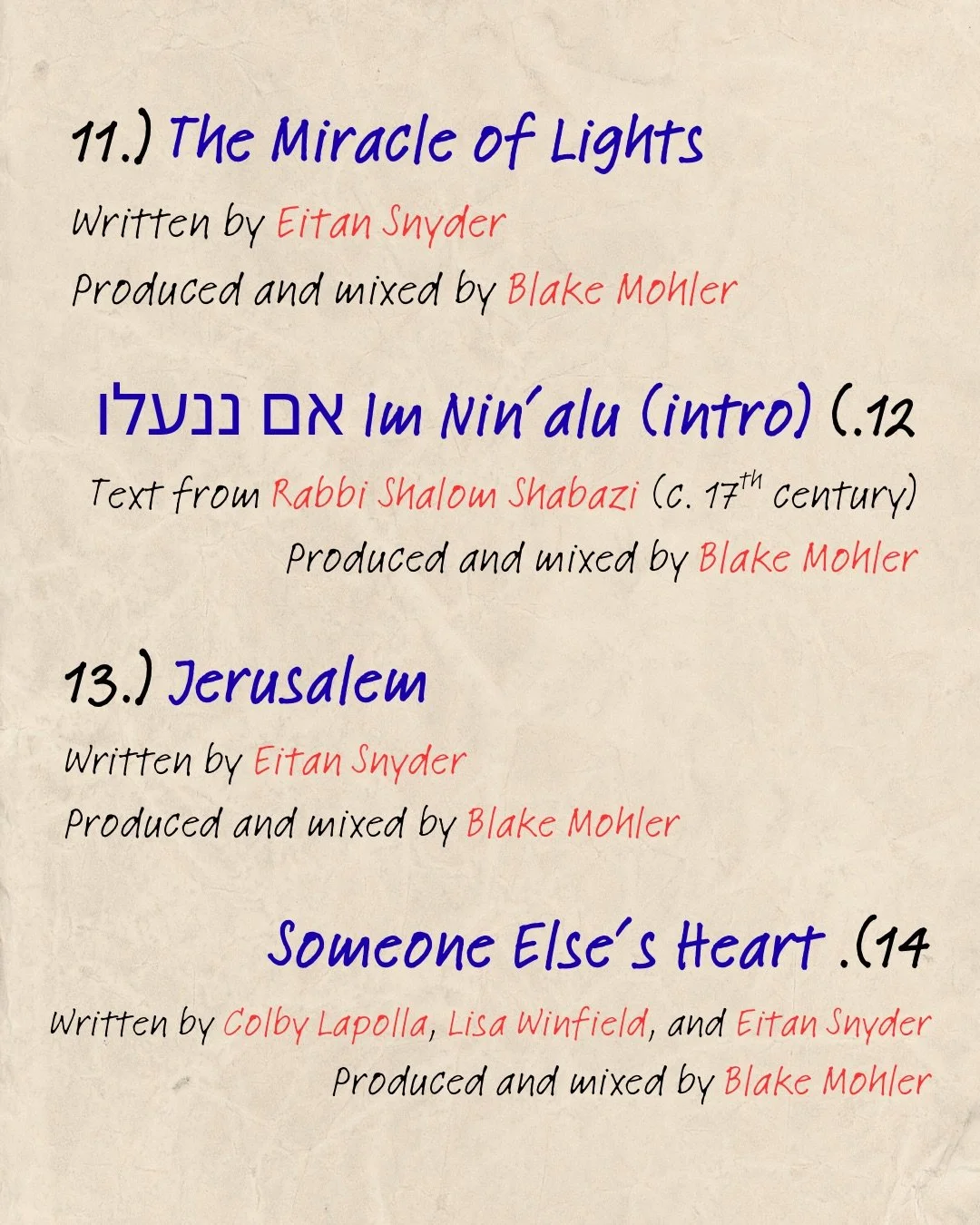 Songwriter album project by Eitan Snyder coming out on Friday, August 14, 2026